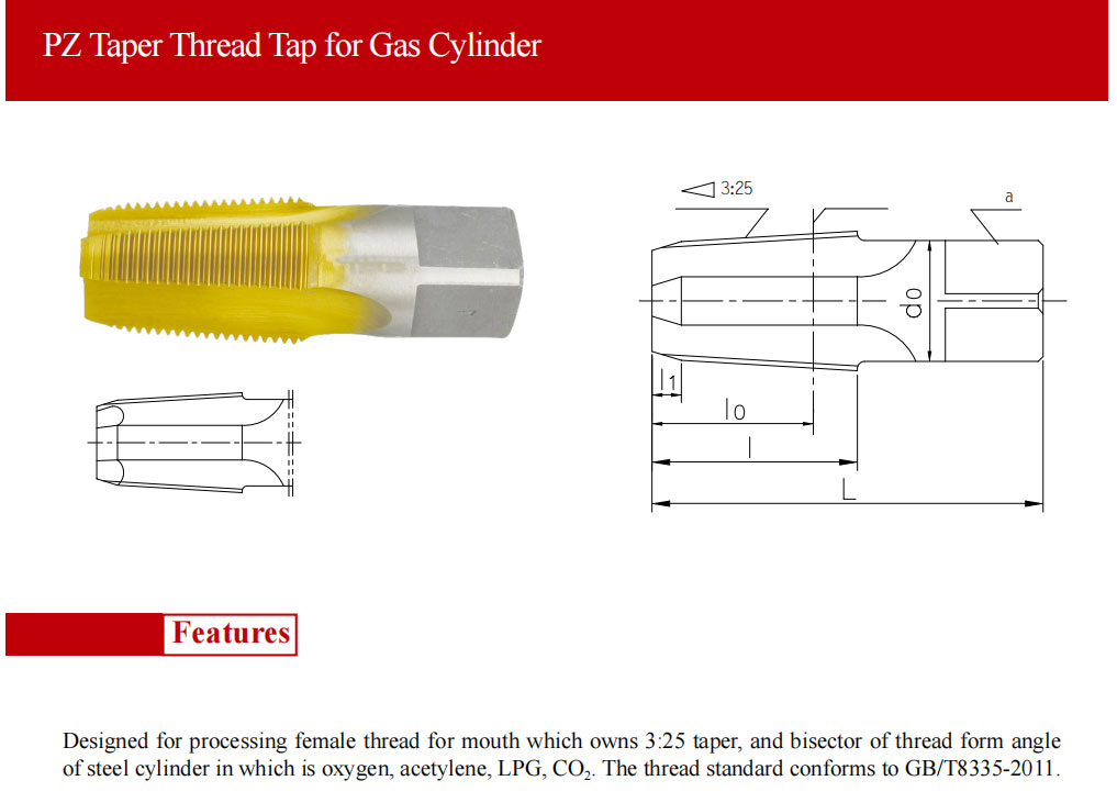 PRODUCT current location:Home > PRODUCT > PZ Taper Thread Tap for Gas Cylinder