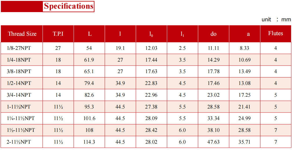 PRODUCT current location:Home > PRODUCT > 60° Taper Pipe Thread Tap HSS Bright-Low Hook for Cast Iron