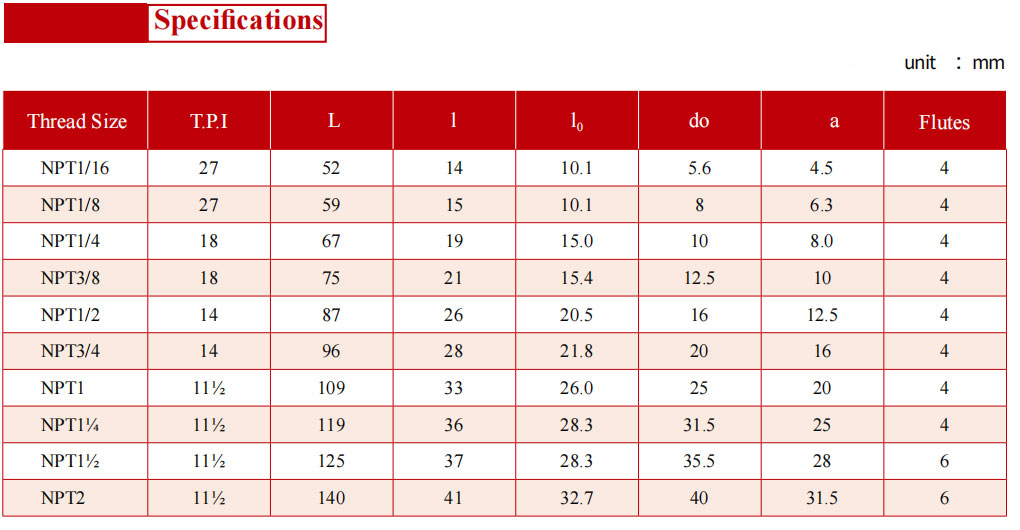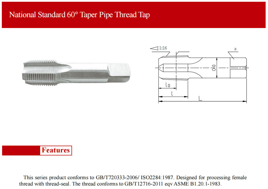 PRODUCT current location:Home > PRODUCT > National Standard 60° Taper Pipe Thread Tap