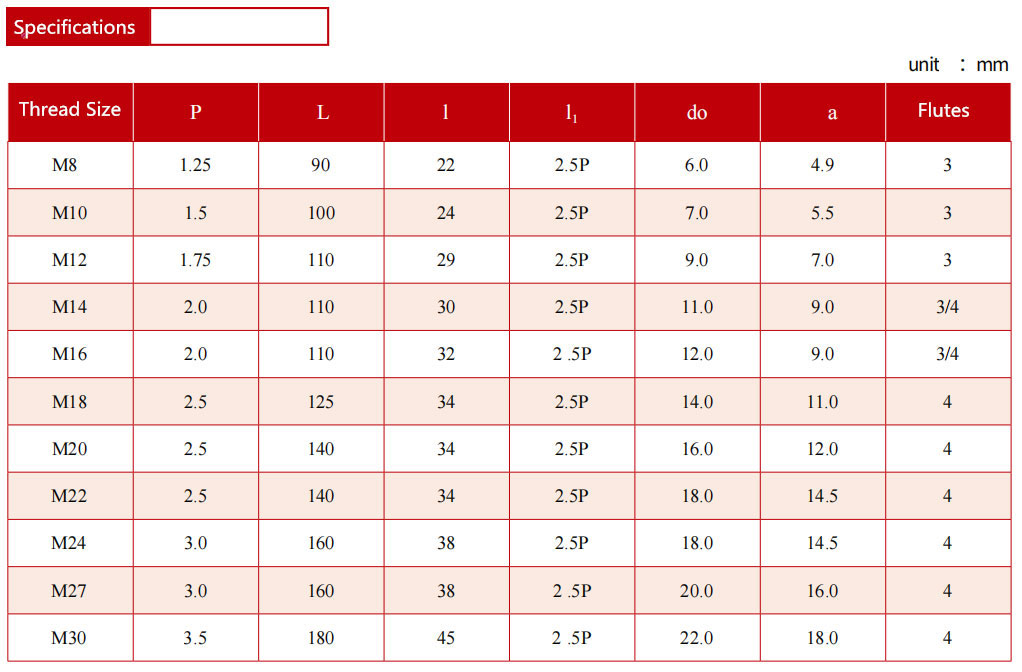PRODUCT current location:Home > PRODUCT > Spiral Flute Machine Tap with Thin Shank (DIN374-376)