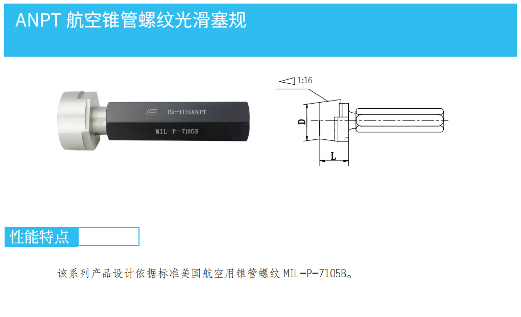 ANPT航空錐管螺紋光滑塞規(guī)