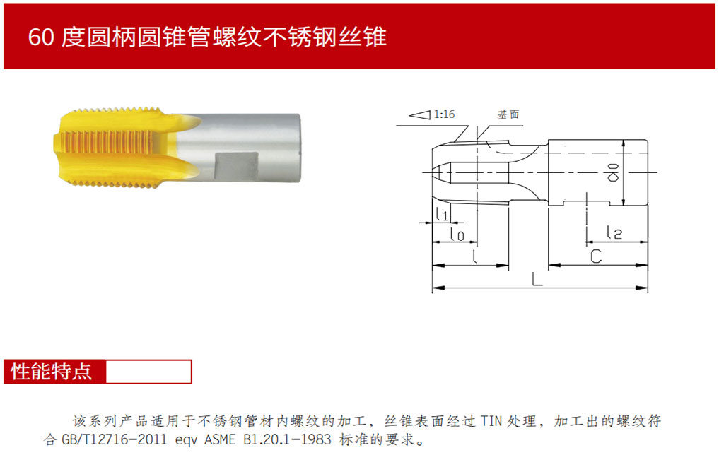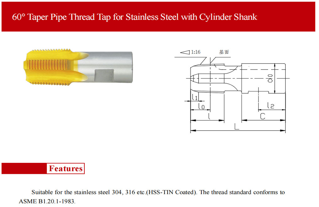 > 60度NPT圓錐管螺紋不銹鋼絲錐