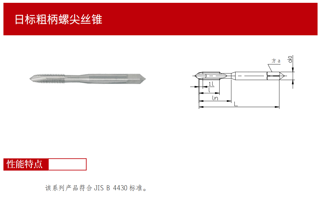 日標(biāo)粗柄螺尖絲錐