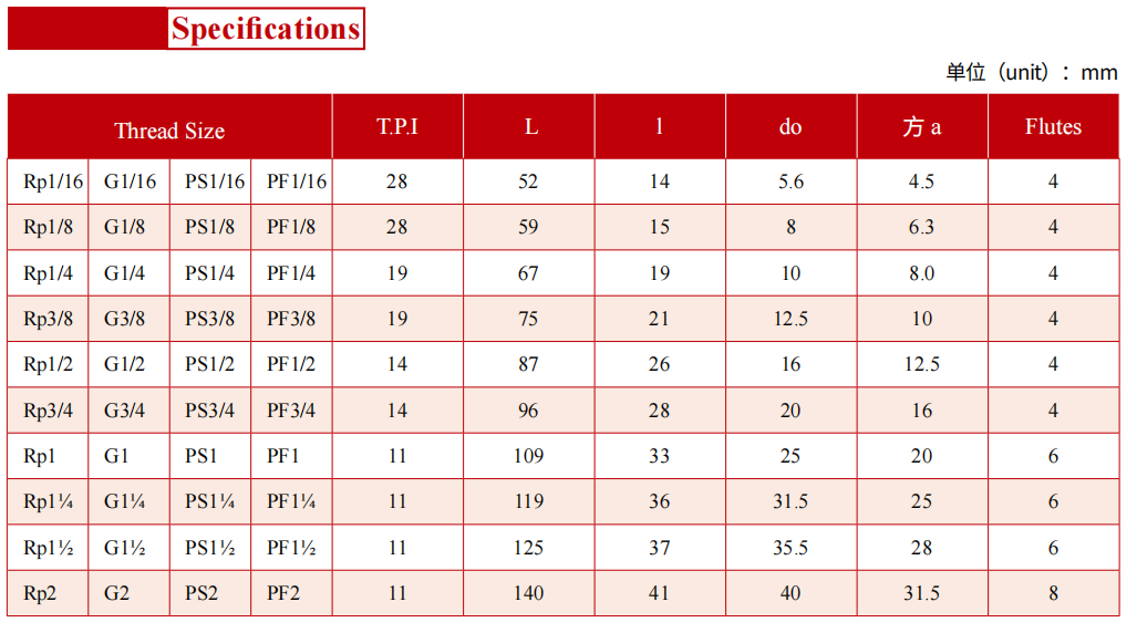 Rp/G(標(biāo)準(zhǔn))圓柱管螺紋絲錐