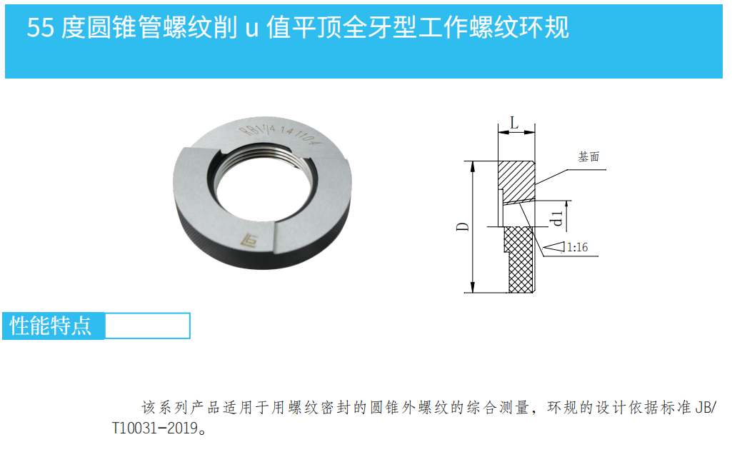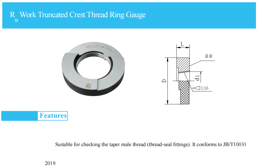 該系列產(chǎn)品適用于用螺紋密封的圓錐外螺紋的綜合測(cè)量,環(huán)規(guī)的設(shè)計(jì)依據(jù)標(biāo)準(zhǔn)JB/T10031-1999。
