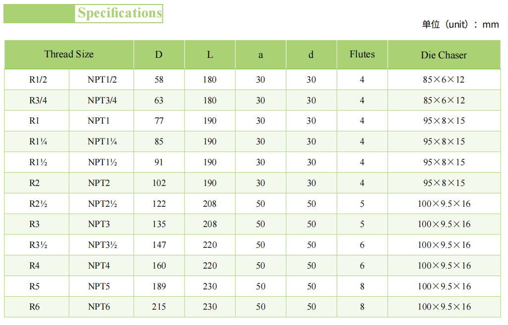 R/NPT圓錐管螺紋梳刀體