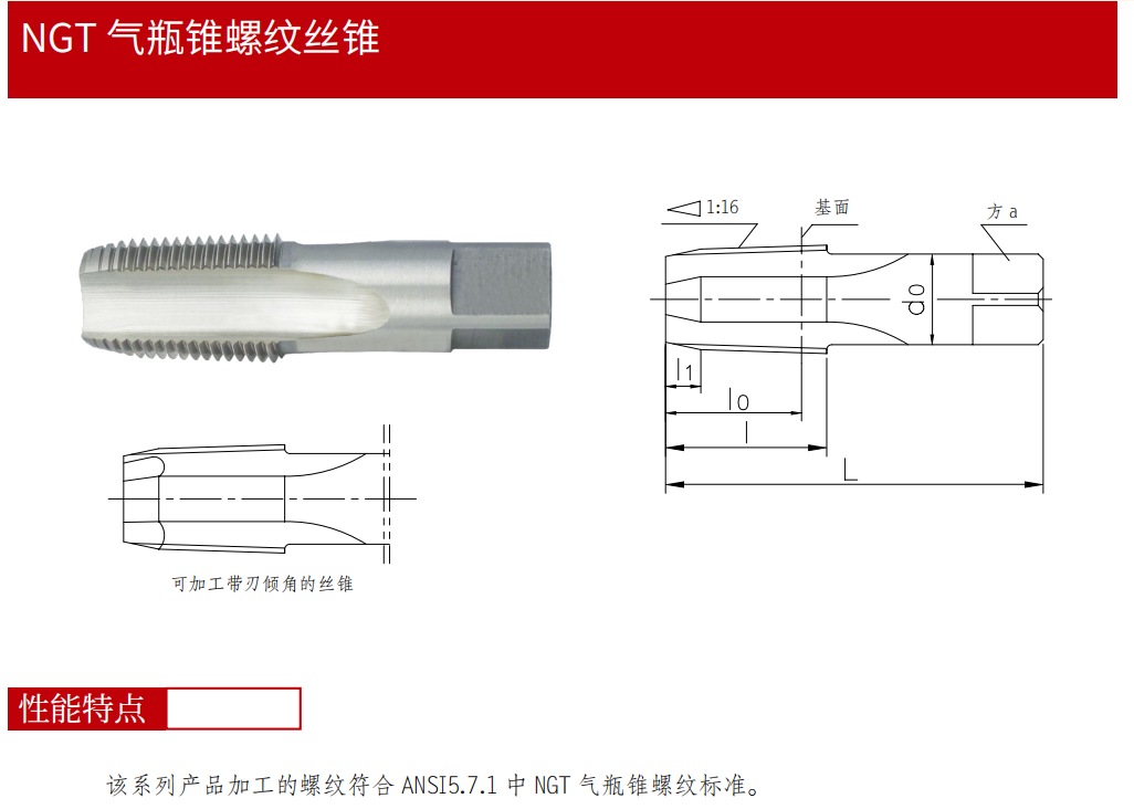 該系列產品加工的螺紋符合ANSI5.7.1中NGT氣瓶錐螺紋標準。